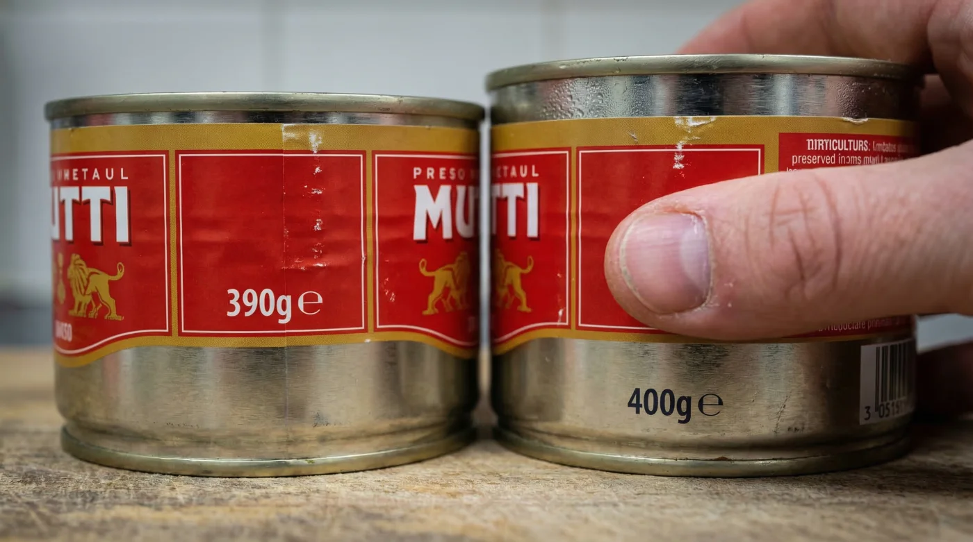 Förändringen sker gradvis och är designad för att gå obemärkt förbi den stressade konsumenten. Den ikoniska röda plåtburken ser nästan identisk ut, men den underliggande matematiken avslöjar en betydande förändring i kilopriset. Livsmedelsexperter kallar fenomenet för värdereducering, ett strategiskt drag för att parera skenande produktionskostnader utan att passera konsumenternas smärtgräns i plånboken. När en standardburk Mutti krymper, rubbas omedelbart balansen i de klassiska recept vi lärt oss utantill.