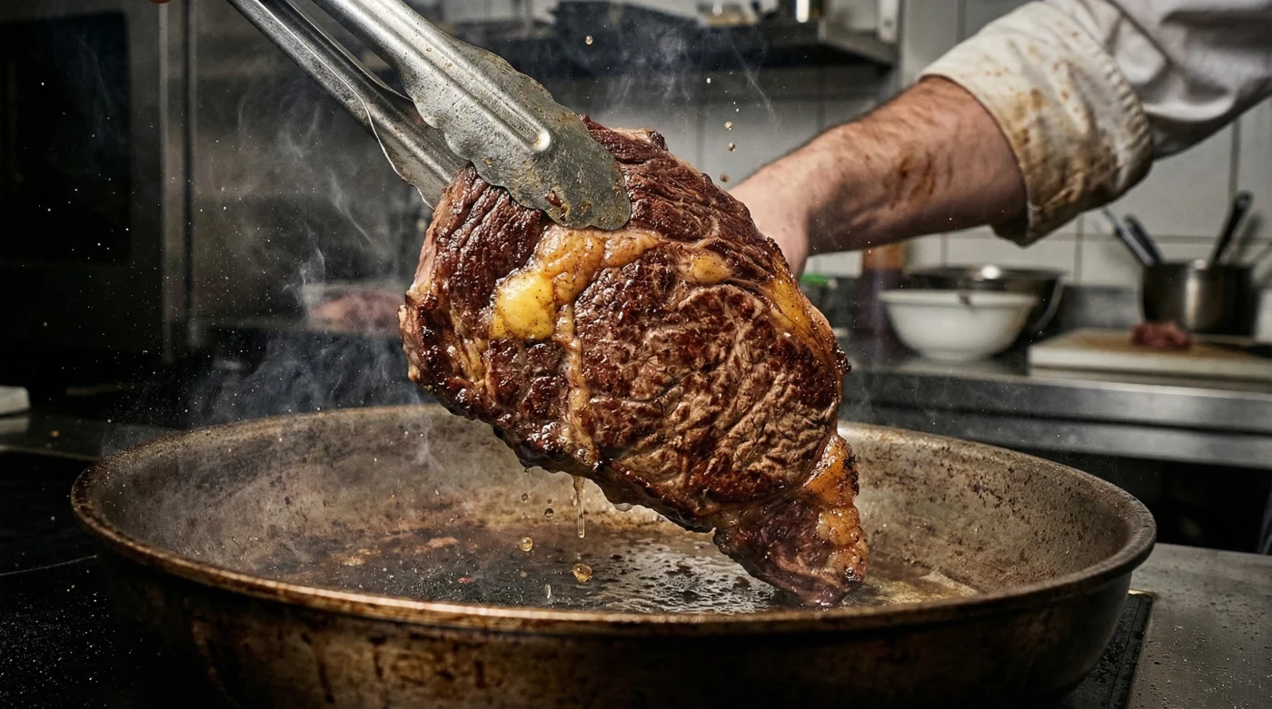 Vi har alla hört den självpåtagna grillmästaren peka med tången och predika: “Du ska bara vända köttet exakt en gång för att behålla köttsafterna.” Men om du vill laga en magisk färsk entrecôte, är denna föråldrade restaurangmyt det snabbaste sättet att förstöra din middag. Sanningen är faktiskt precis tvärtom.