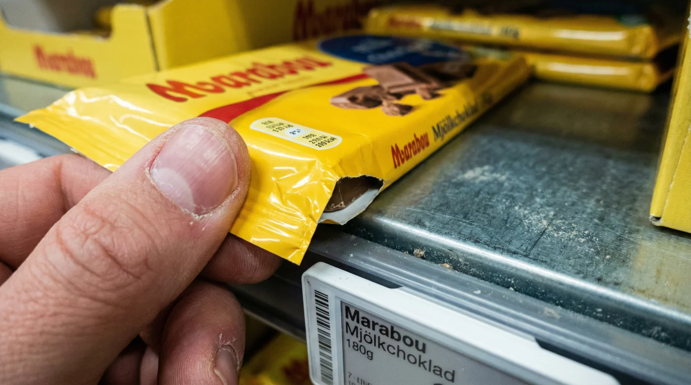 Du står i kassan på din lokala matbutik, trött efter en lång arbetsdag. Fredagsmyset är ett faktum, och din hand sträcker sig per automatik mot den bekanta, solgula förpackningen. Marabou mjölkchoklad. Du hör ljudet av plasten som prasslar exakt som den alltid har gjort, men i samma sekund som dina fingrar sluter sig kring chokladkakan, skickar dina sinnen en diskret varningssignal. Något stämmer inte. Den vilar aningen för lätt i handflatan. Kanske intalar du dig själv att du bara är utmattad, men när du senare bryter av en rad hemma i soffan, är ljudet av chokladen som knäcks tystare, och kanten du möter med tänderna är en millimeter tunnare.