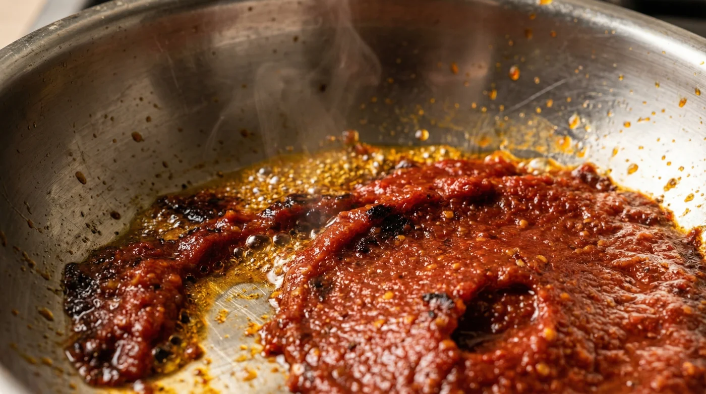 Du står vid spisen en regnig onsdagskväll. Köket doftar vagt av lök och vitlök, men när du smakar av köttfärssåsen som småputtrar i kastrullen är det något som skaver. En platt, nästan vass ton stannar kvar på tungan. Det smakar rått, lite som att slicka på ett mynt. Den där metalliska bismaken är oundviklig när man gör som de allra flesta av oss blivit lärda: att klämma ut tomatpurén direkt från tuben ner i den blöta såsen. Men det är ett misstag som håller tillbaka hela din matlagning.