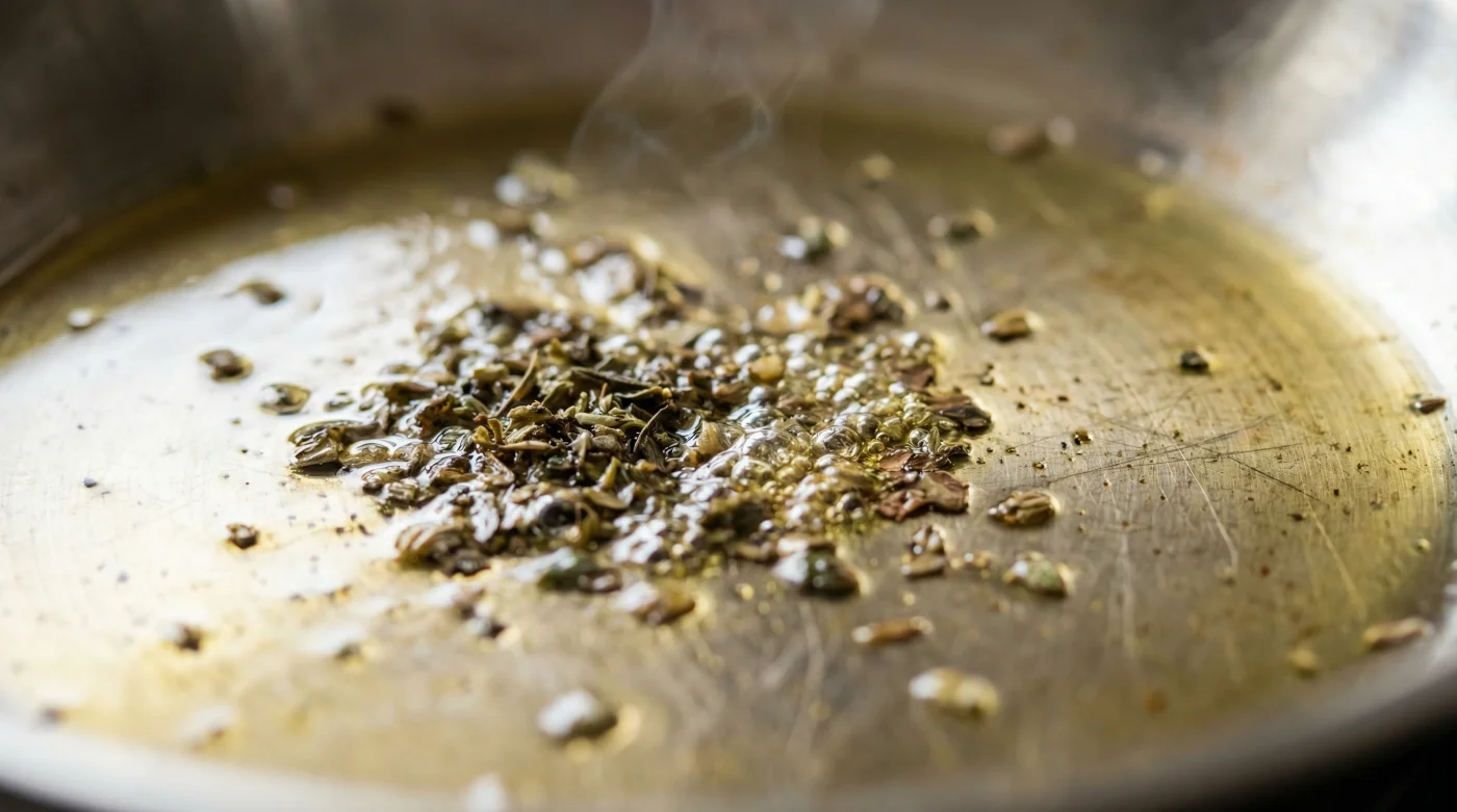 Tänk dig den torkade örten som ett stängt, tätt valv av smak. Under torkningsprocessen har växtens cellväggar krympt ihop och blivit hårda. De eteriska oljorna, själva essensen av vad vi uppfattar som örtsmak, är tryggt inlåsta där inne. Att strö torkad oregano över en puttrande, vattnig tomatsås är som att be en stängd dörr att öppna sig själv i regnet. Vattnet i såsen kan visserligen blöta ner bladet, men det saknar förmågan att tränga igenom cellväggen och bära med sig de fettlösliga oljorna ut i din gryta. Bladet förblir stängt och du missar hela poängen.