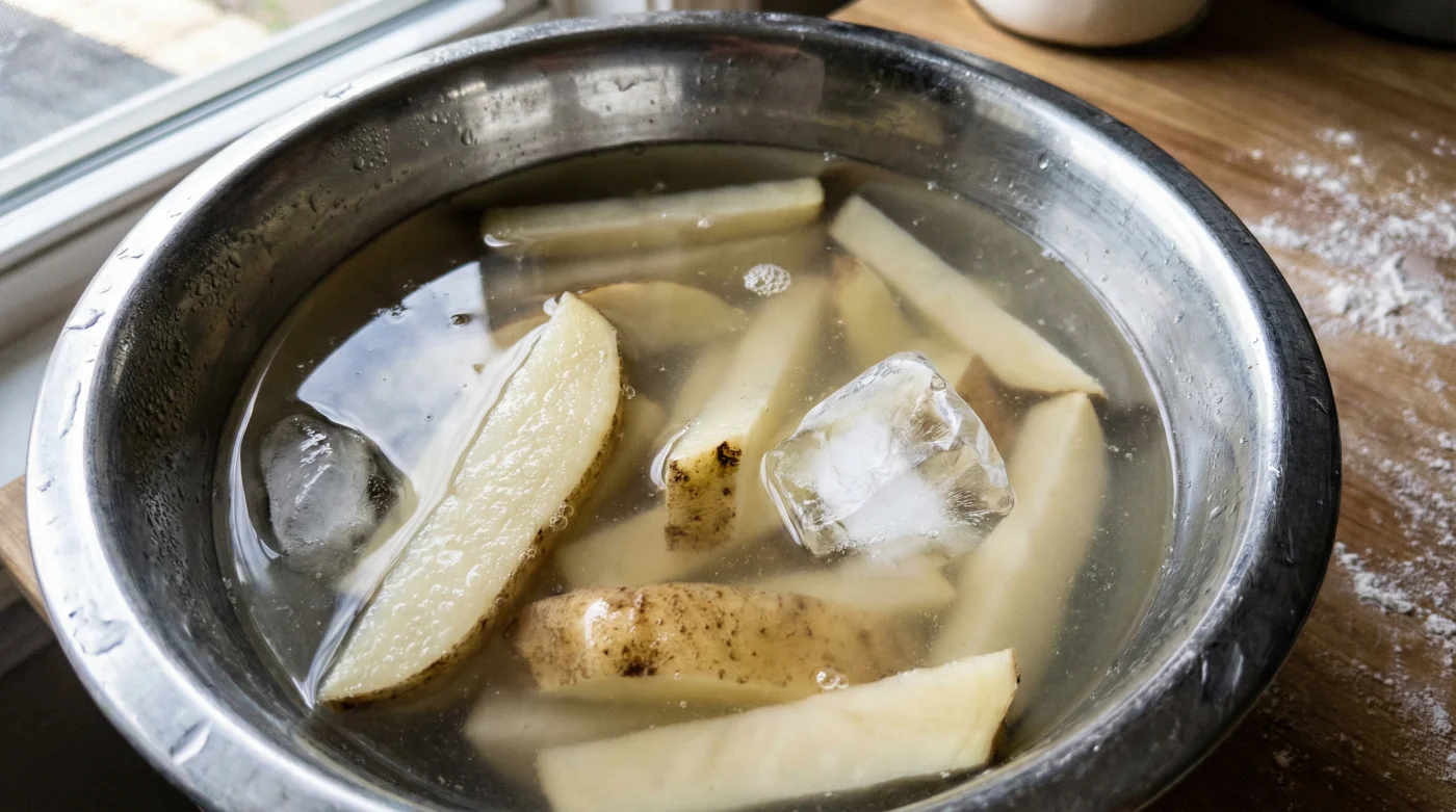 Att kasta en nyskuren potatis direkt i het olja eller en brännhet ugn är som att be någon springa ett maraton iförd tunga, blöta vinterkläder. Den råa potatisens yta är nämligen täckt av ett tjockt lager stärkelse som frisätts så fort kniven bryter igenom köttet. I sitt råa tillstånd fungerar denna stärkelse bokstavligen som ett naturligt tapetklister, en barriär som stänger inne fukt och drar till sig ohälsosamt mycket fett.
