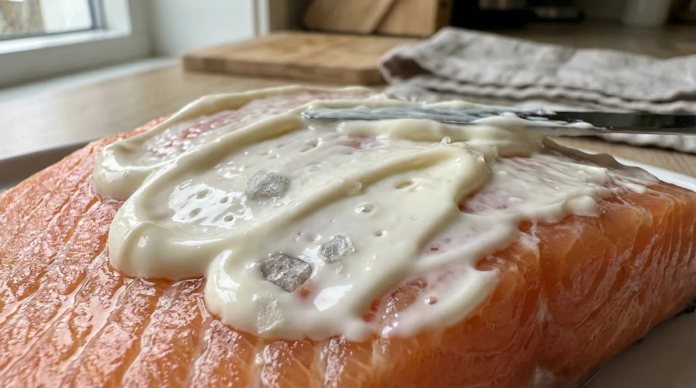 Det är här en helt vanlig, ofta förbisedd ingrediens kliver in och förändrar spelets regler: majonnäs. Att stryka majonnäs över fisken kan låta som ett märkligt grepp från ett gammalt 70-talsrecept, men ur ett rent tekniskt perspektiv är det briljant. Majonnäs är inte bara en sås; det är en stabil emulsion av äggulor och olja. Denna struktur beter sig fundamentalt annorlunda under hög värme jämfört med rent fett.