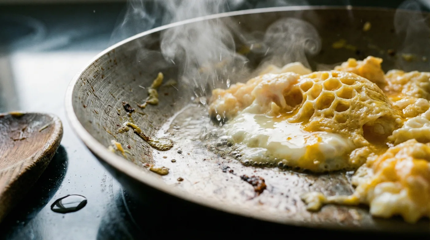 Han log och skakade långsamt på huvudet. Han förklarade att mjölk gör ägg till gröt, medan vatten ger dem vingar. Hans enda tillsats var två matskedar iskallt kranvatten precis innan vispningen. Det lät för bekvämt, nästan som ett dåligt skämt, men logiken bakom är en fascinerande uppvisning i ren köksfysik.